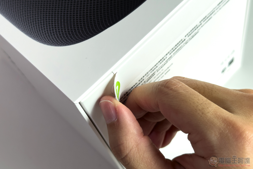 雖然尺寸方面 HomePod 2 有稍微矮了 4mm(還變輕了一點)。但包裝外盒與初代的設計基本一致。最大的改變,應該是採用無塑膠封膜,也就是近代 iPhone 系列那種雙「紙條」封箱的開箱方式。