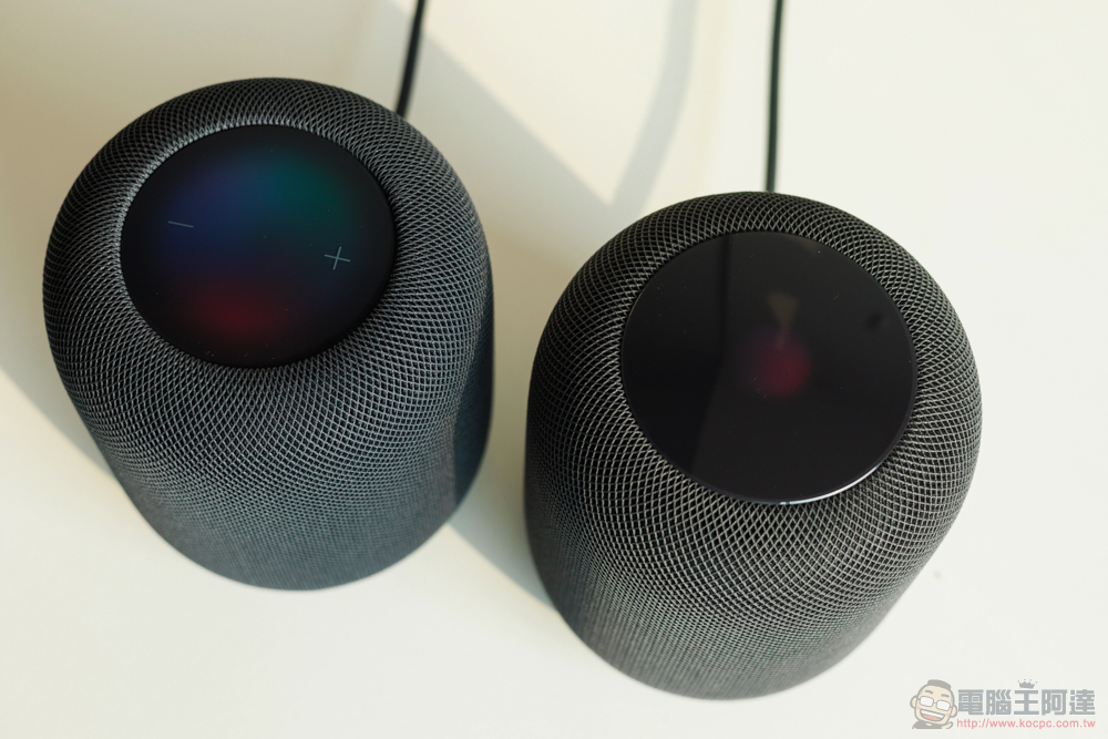 加上頂部的範圍也小圈了一咪咪(一代就像是水面張力)。因此就外觀上來講,個人其實是更喜歡初代多一點,覺得更內斂有型。但顏色來說,自己就更偏好 HomePod 2 更深的顏色。