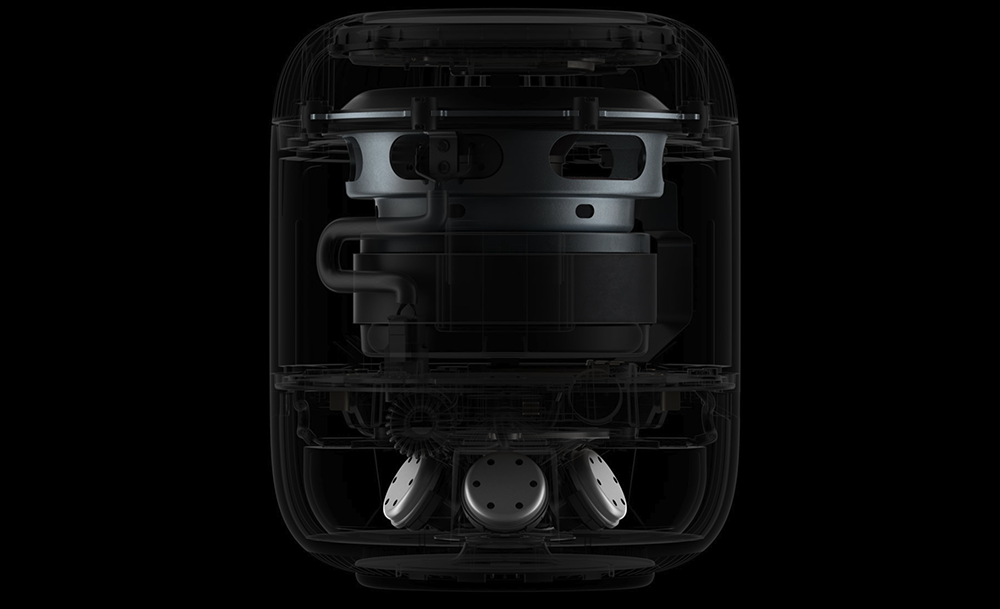 細數環繞 HomePod 內部的高音喇叭陣列,從一代的 7 個,來到 HomePod 2 變成了 5 個;能夠協助進行運算是音訊的「空間感應」的陣列麥克風,則是從 6 個變成了 4 個(但都依然有可以依據內部壓力校正低音的等化器麥克風)。