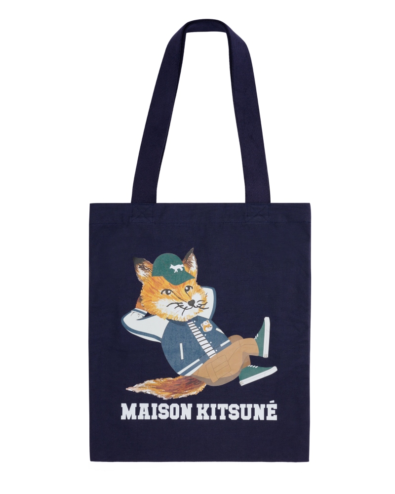 每天上班都只想躺一下?Maison Kitsuné的這個小狐狸太有個性啦,把棒球帽、外套穿戴整齊後,直接先躺下,繪製的插圖萌翻天,搭配上深藍色的基調,可以肩背的提把長度,完全是個夢幻帆布袋!
