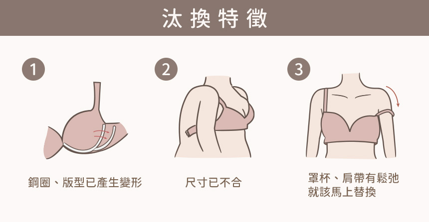 ③ 罩杯、肩帶有鬆弛就該馬上替換。