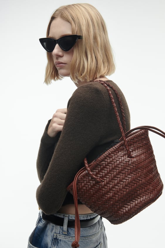 ZARA 真皮編織水桶包 NTD$4490