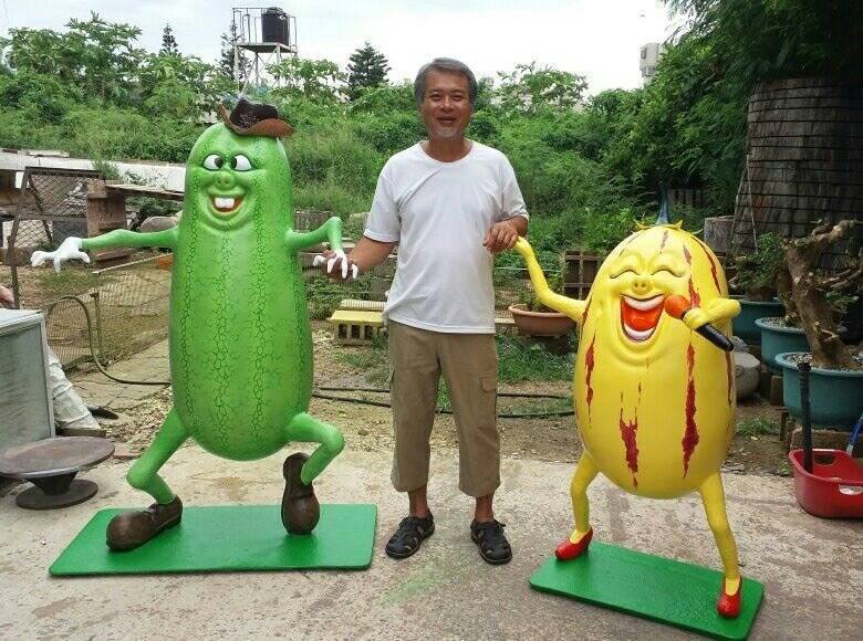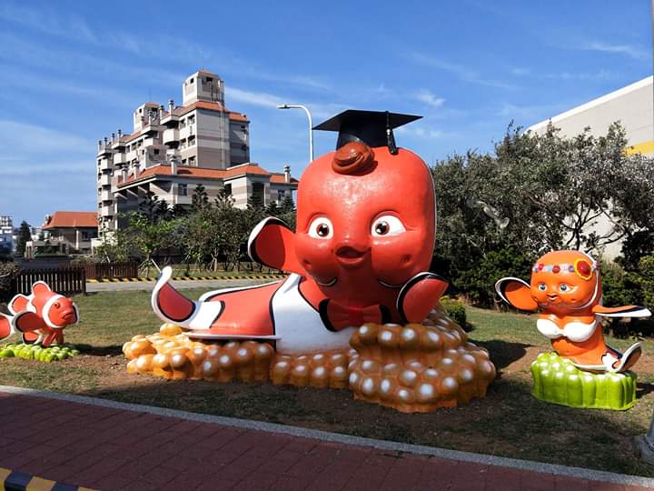 而這個醜萌的吉祥物,一樣是由藝術家吳飛達操刀,以製作「B極景點」著名的他,與公部門公共藝術合作了長達30多年,詭異又嚇人的吉貝嶼「珍珠小童」、「魚叉小童」,以及位在澎湖科技大學的小丑魚「雪印」、後寮村中以會唱歌跳舞的嘉寶瓜和楊梅果打造的《瓜果樂團》,也通通都是他的作品。
