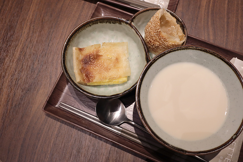 可選擇搭配三樣主餐,「阜杭豆漿套餐」內容包含豆漿、燒餅、焦糖甜餅。