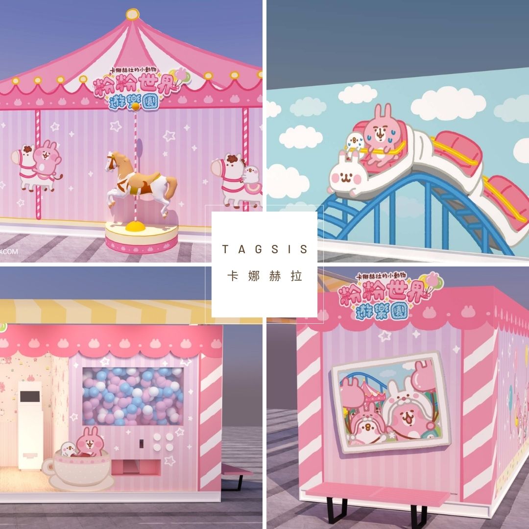 一進到遊樂園,就能看到超夢幻「立體旋轉木馬」, 讓大家能和旋轉木馬上的P助與粉紅兔兔開心合照,更有集結遊樂園各種可愛設施的12米長「粉粉世界遊樂園」、「直衝雲端雲霄飛車」等拍照牆,扭蛋機旁還有P助與粉紅兔兔坐在「轉轉旋轉咖啡杯」中,8大超萌打卡點肯定讓你拍到不想回家!