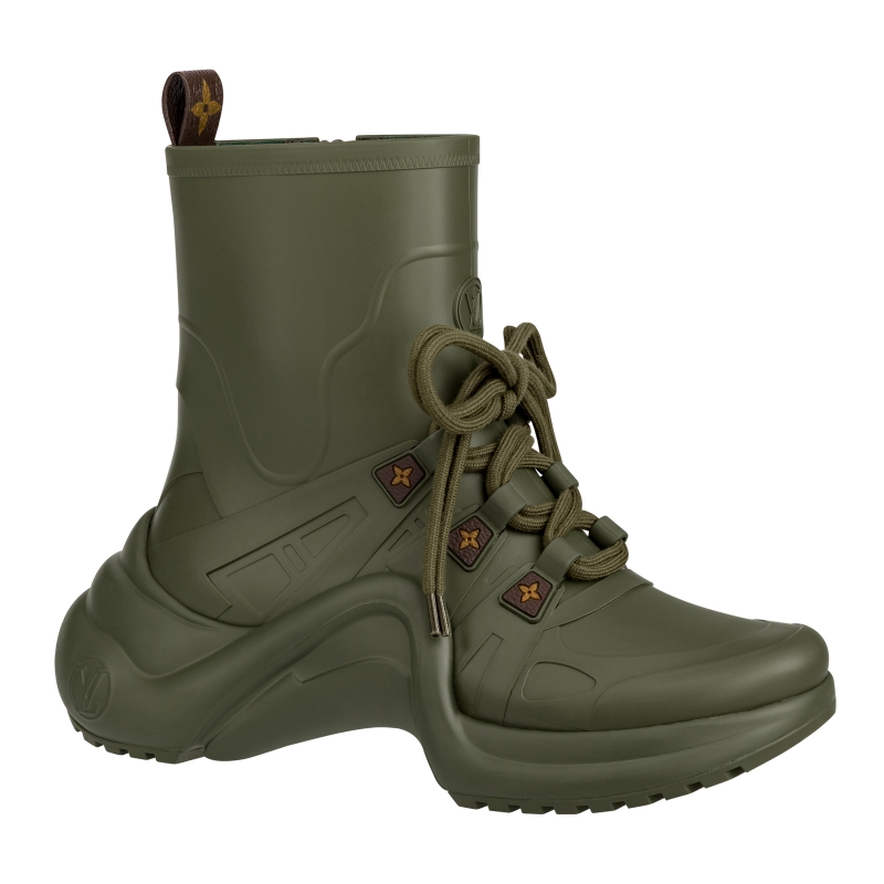Louis Vuitton的「Archlight」的科技未來感的造型,已經讓無數時髦男女被圈粉!而面對雨季降臨,也幫大家準備好以橡膠材質的靴款,一體成型的設計,搭配上雙鞋帶的配置更有Outdoor感,與細節處的小小monogram相互輝映!(價格:NT$31,300)