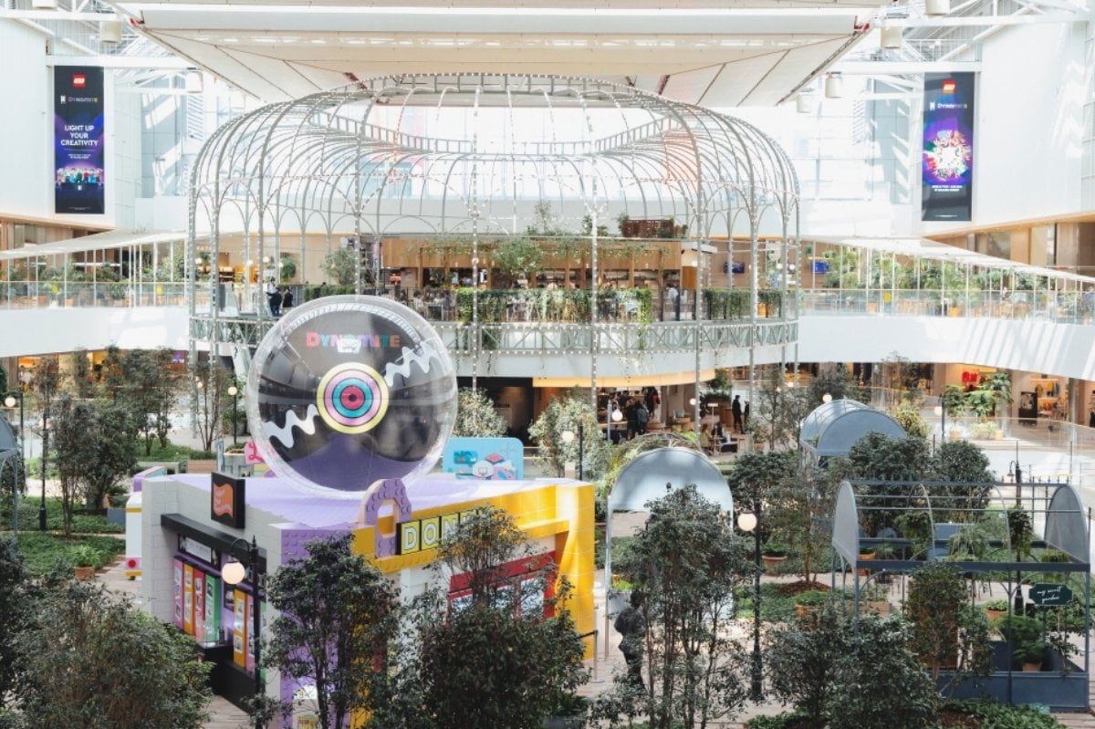 於2021年建成的「The現代首爾」是首爾最大的購物中心,不僅可以享受購物和美食,還可以在時尚又充滿設計感的空間拍照打卡,位於5樓的音韻森林與水池花園更是不可錯過的打卡點。在頂樓更有大規模室內庭園與天然草皮,玻璃天花板的高質感採光,讓百貨公司傳遞出如同自然森林的氣息。