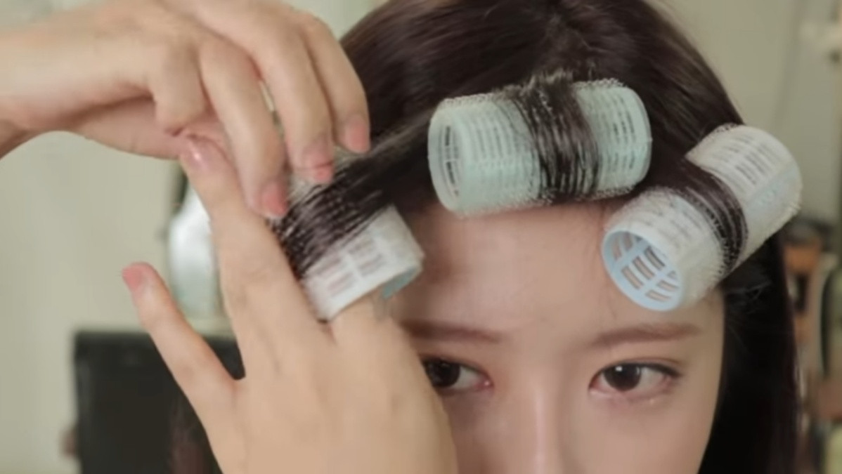 韓妞瀏海蓬鬆技巧STEP1:髮捲整理