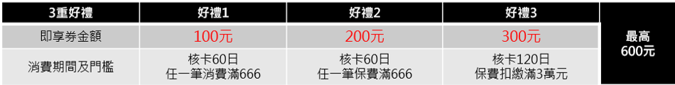 ※符合活動回饋資格者,將於廠商請款後依關帳批次陸續回饋至正卡人信用卡帳單,限按沖銷順序直接折抵當期新增一般消費款且不可申請退回,亦不可兌換現金,若交易取消、退貨時刷卡金將於帳單扣回。