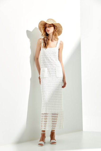 蕾絲也是春夏不可錯過的流行元素!這件洋裝採用仿手勾簍空蕾絲設計,盡顯優雅氣質,搭配上草帽,便是休閒又不失質感的度假穿搭。寬肩帶無袖搭配直筒剪裁,不僅可以修飾身形,還能使身高更加突出。最棒的一點是附有內襯,因此不必擔心材質扎膚或需要另外購買內搭單品。