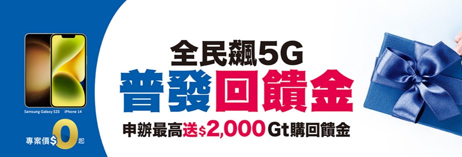 B.實體門市申辦指定5G資費享最高2000元GT購回饋金: