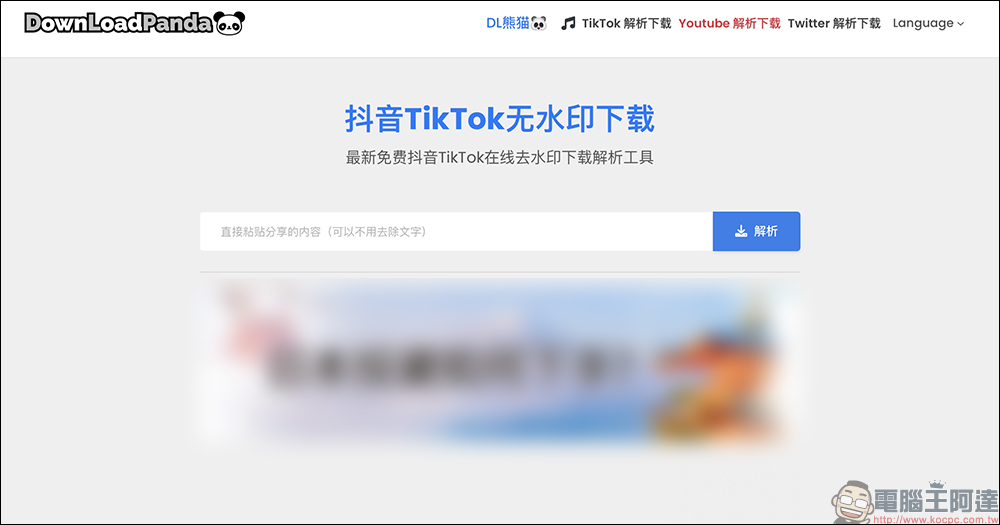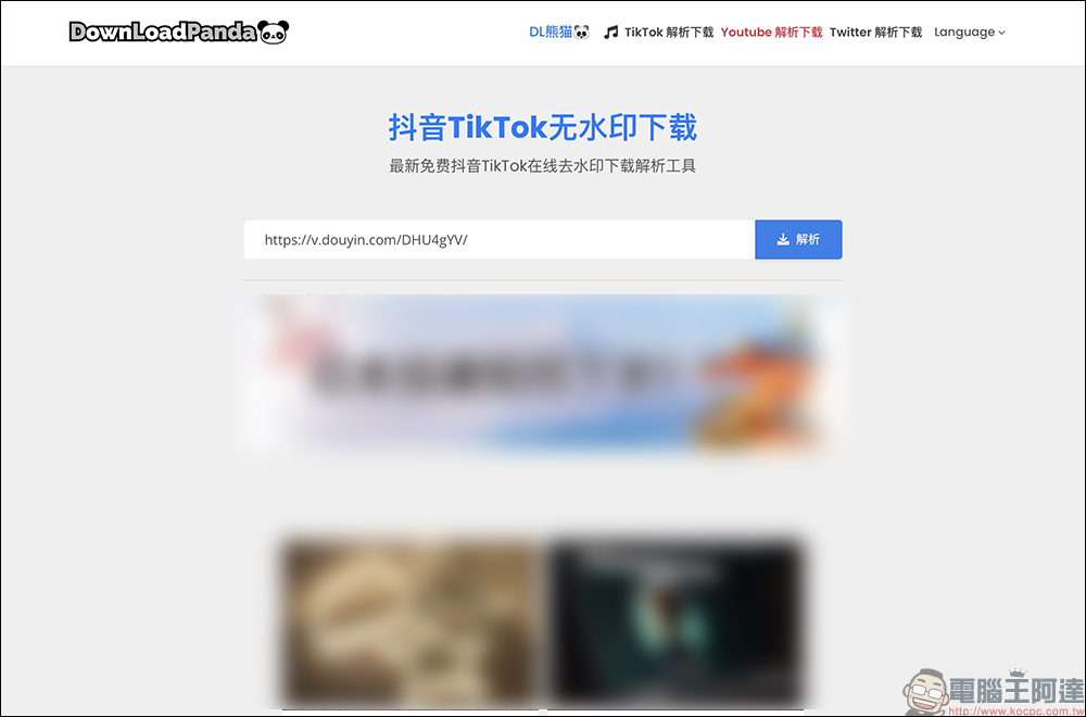 抖音 TikTok 、小紅書影片去浮水印下載工具「DownLoadPanda」