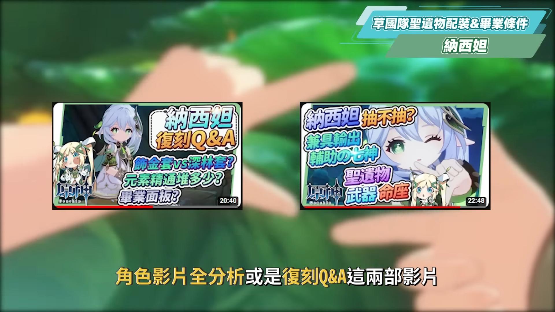 總體來說在3.6版本入坑的萌新是一個非常推薦的版本,尤其納西妲加倍的卡池中還有久岐忍的機率提升,因此草國隊成員很容易湊到近乎聽牌的階段,就算沒有行秋,也可以用芭芭拉,隨著須彌版本即將進入尾聲,楓丹版本也不遠了,納西妲這次復刻也不知道下次何時才會再見了,趁著卡池時間還有幾天,若是你還沒有抽納西妲或是湊草國隊的肉肉們,趁現在入手絕對不虧,希望大家也都能更加了解草國隊的配置與玩法,我是虛擬Youtuber璐洛洛,我們下次見囉!
