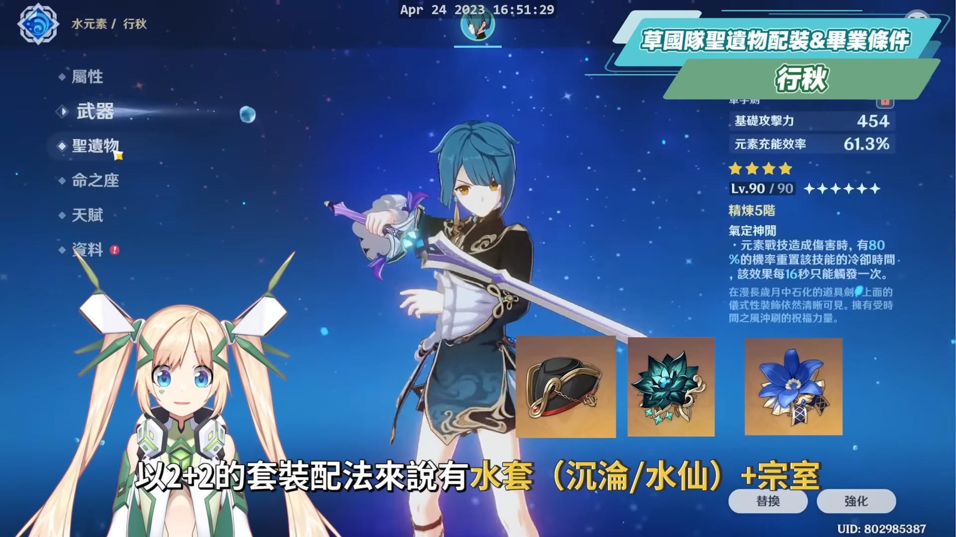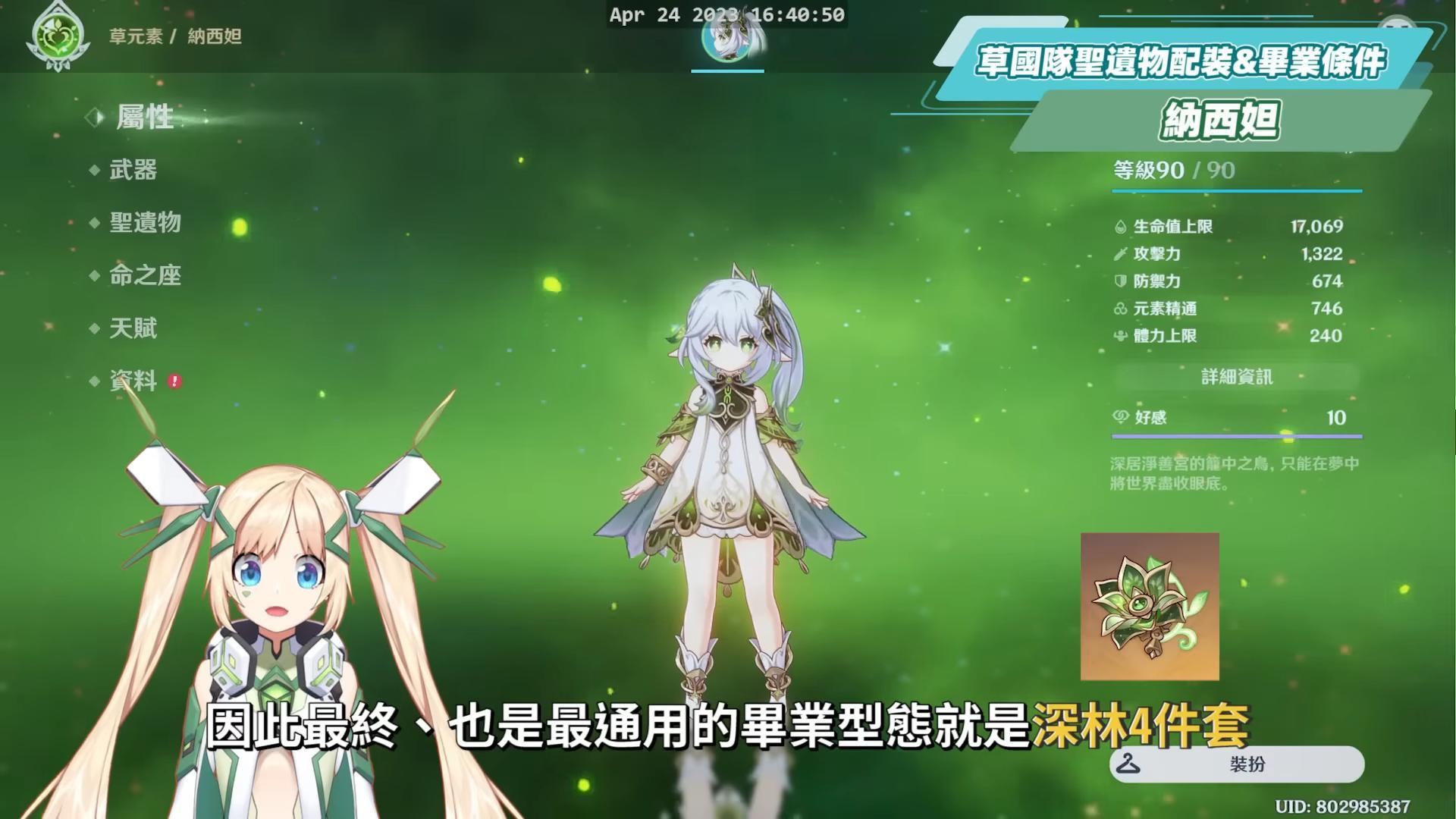 再來分別說說草國隊的成員分別建議穿戴哪些聖遺物配裝,以及相關的畢業面板。
