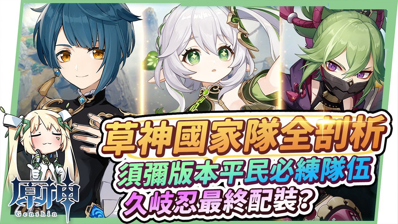 哈囉哈囉!我是虛擬Youtuber璐洛洛,這次要帶來的是從須彌版本後幾乎可以說是每個萌新都應該學會的「草神國家隊」陣容,這是一隊可以媲美先前「雷神國家隊」的陣容,不僅具備一定的強度之外,培養的CP值也極高,同時也能夠和雷神國家隊組成兩隊打穿深淵的低成本配隊,因此趁著納西妲復刻,又有久岐忍加倍的3.6上半卡池,洛洛也帶來草神國家隊的組隊思路以及培養條件,同時也會說明各個角色建議的聖遺物配裝與畢業門檻,以及角色的備選替代等內容,就算你還沒有抽草神,也建議可以看看內容更了解草國隊的優勢與草元素反應哦!