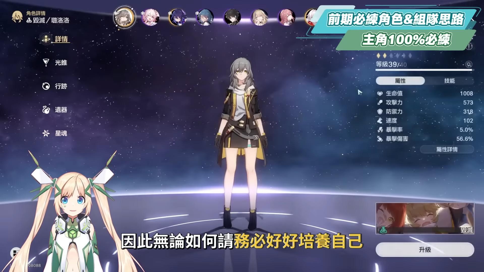 《崩壞:星穹鐵道》和《原神》一個很大的不同就是鐵道的主角非常強,而且培養過程的材料需求也比較少,可以歸類在T0等級,而且有的劇情也會指定需要主角出場,因此無論如何請務必好好培養自己,後續解完主線後就可以自由切換不同命途,在面對不同的戰鬥場合時也可以靈活變換。