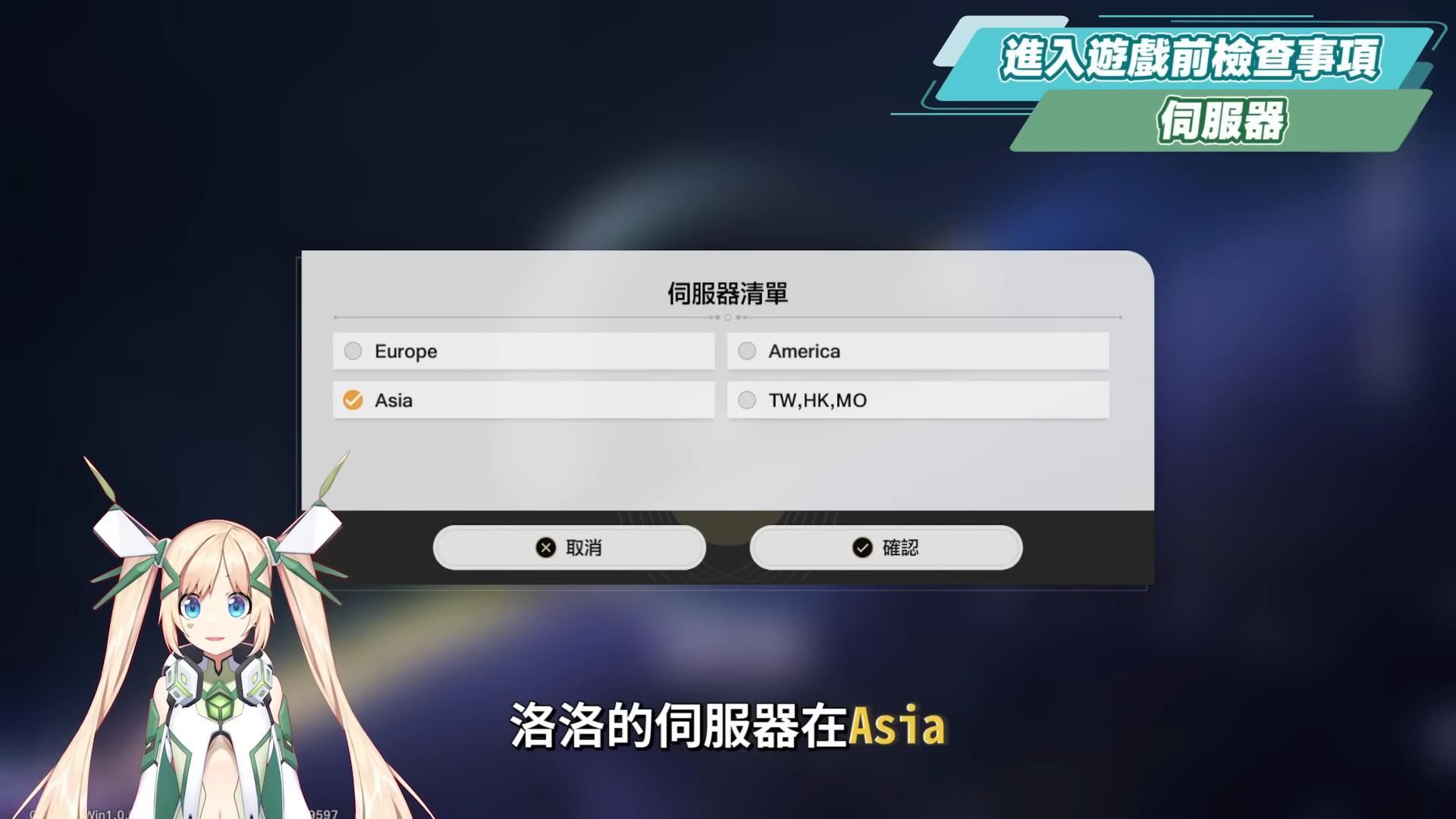 這邊大致上提點一下要進遊戲暢玩前有空能先注意的一些重點事項,首先就是登入介面的伺服器選擇,假如你已經有和朋友約好的話就可以選擇和朋友相同的伺服器一起遊玩,而如果是沒有什麼想法,或是想和洛洛同一個伺服器的話,洛洛的伺服器在Asia,後續有機會可以使用洛洛的支援角色,或是也可以和其他亞服的滷肉幫們一起玩,同時也能抱其他日本或韓國的大腿。