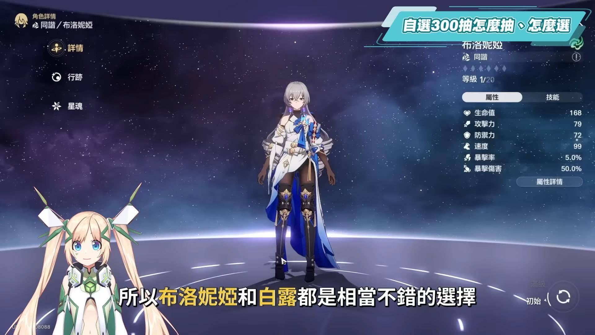 再來就是很多萌新也在問的300抽自選怎麼抽,懶人包的順序就是有拿到免費的星軌通票就可以先抽「始發躍遷」池,最多50抽保底必拿一隻5星,如果運氣好沒有保底才出的話,只要出5星就可以把星軌通票拿去抽常駐池了,否則在始發躍遷池的抽卡數,是沒有辦法累積在300抽裡面的,而星軌通票這個東西就類似於《原神》的藍球「相遇之緣」,一般都是不建議直接花原石來買或是用原石直接抽常駐的,所以最重要的重點就是千萬不要用星瓊去抽「始發躍遷」還有「常駐池」,只要透過遊戲內送的,或是商店每個月折扣換的星軌通票去抽就可以了,星瓊或是星軌專票就留給限定角色和光錐池,除非是課長想要早一點把300抽自選拚出來,這樣中間也可以多抽至少3~4隻5星角色,再加最後的自選5星,拿完這一次300抽之後後面就佛系了,而最後完成300抽之後,自選的7位角色應該要怎麼選,主要就是選你最缺的就好,通常輔助角和奶媽人權最高,所以布洛妮婭和白露都是相當不錯的選擇,但如果運氣好剛好只缺一隻,那就可以在自選時選自己少的那一隻,如果兩隻人權都有,那就可以再選自己喜歡的輸出或是瓦爾特等等,其實就算想選自己喜歡的也OK,因為這七名角色都有各自的特性,平衡性上也在公測後稍微調整過了,所以自己選得開心最重要。體力運用方向