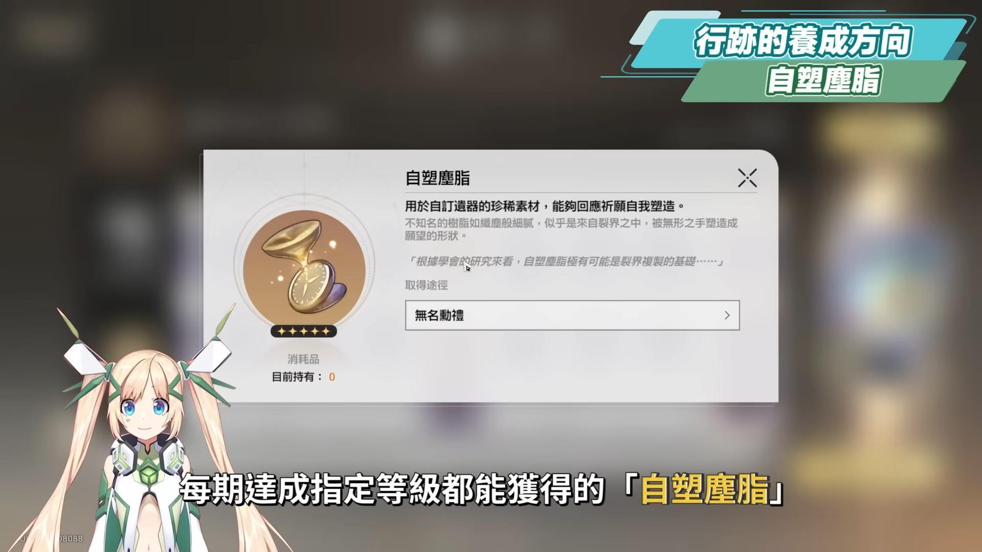 再來重點提點一個所有《原神》玩家們都感到望塵莫及的一項神器,就是透過類似每月通行證的「無名勳禮」中,每期達成指定等級都能獲得的「自塑塵脂」,這項道具可以用來指定遺器的主屬性,因此假如刷到不錯的副屬性遺器,但是主屬性大歪特歪,那麼這時候自塑塵脂就可以派上用場。但也因為每一期只能領一個,所以這個道具也算是十分稀有,並且也建議將自塑塵脂盡量留在五星遺器上,或是有不錯的軀幹或鞋子部位的遺器、這時就可以指定主屬性為暴擊的衣服和速度主屬性的鞋子,如果沒有很急的話也可以多留一些等到後面去指定自己缺少的遺器部位主屬性,這樣就能省去許多刷遺器的時間成本哦,但也因為無名勳禮需要課金購入,非常推薦大小月卡都給他買起來。小技巧與彩蛋補充