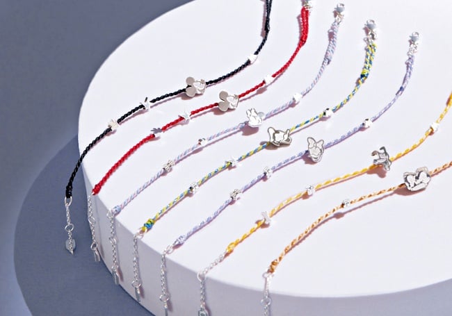 迪士尼的元祖大佬,幾乎全員到齊…米奇、米妮、布魯托、唐老鴨、黛西分別都有專屬款式,同時採用各自的代表色作為繽紛蠟繩編織,像是「米奇款」就推出黑以及紅配色款式,除了有925純銀製成的米奇大頭裝飾,招牌字母M、手套等元素都超有梗點綴,「唐老鴨款」則是黃、藍交錯編織,超有水手夏日氛圍。