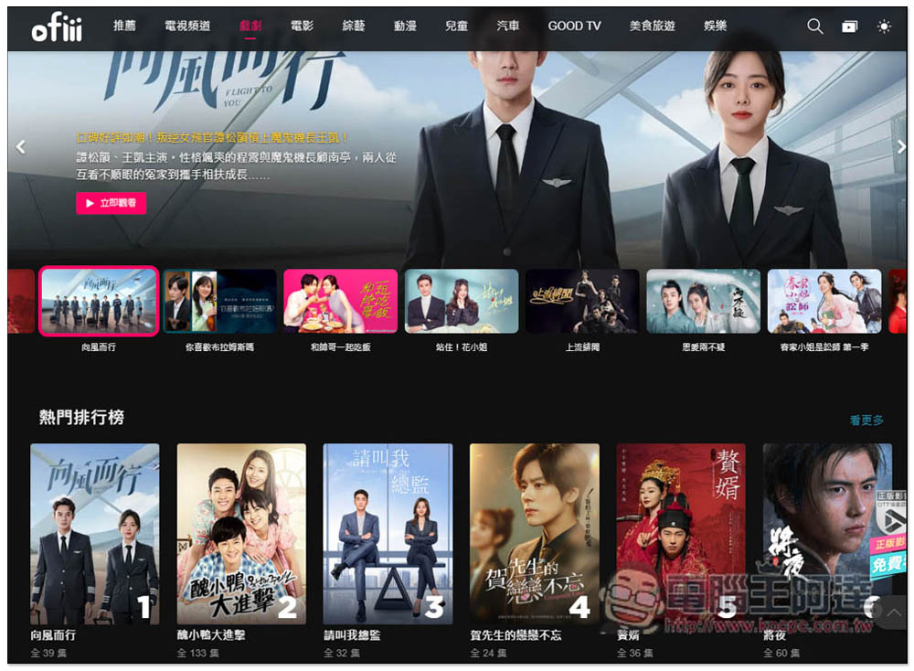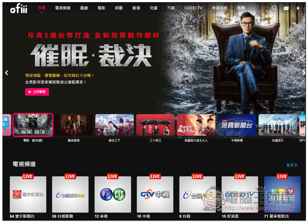 「ofiii 歐飛」提供大量合法免費電影、動畫、戲劇線上看,還有各大台灣電視頻道