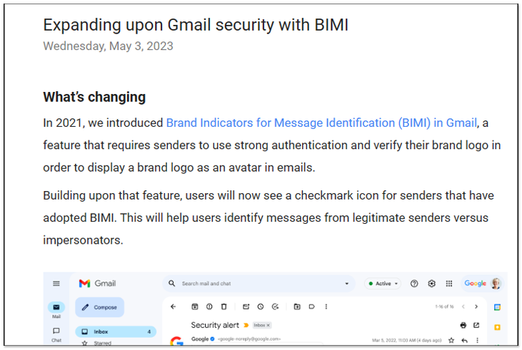 Google 也提到:「這強大的電子郵件身份驗證,可以幫助用戶和電子郵件安全系統識別和阻止垃圾郵件,還可以讓寄件人提升他們的品牌信任度,讓收件者對電子郵件來源更有信心,並為他們帶來沉浸式的體驗,每個人都獲得更好的電子郵件生態系統。」