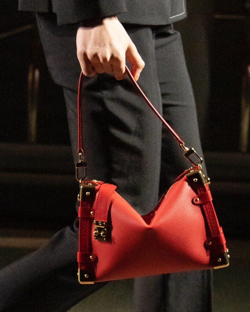 在2023早春中,創意總監Nicolas Ghesquière靈機一動把硬殼的旅行箱包變軟了,原本挺拔的包型,在換上其他結構後,變得中間會自然有個垂墜度,而一旁依舊有著行李箱上的皮革邊條與金屬裝飾,把剛與柔兩者之間的衝突,在同一個包款上呈現,而在這次的早秋系列中,可以看見這個“軟版的行李箱”包款,換上紅色、帶著亮度的黑色,用不同的姿態,再度抓住時尚迷目光,也讓人猜想「Side Trunk」是否會成為新經典?