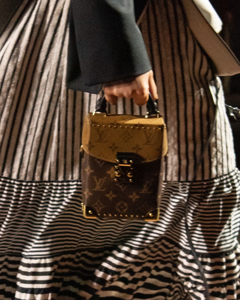 在秀場還沒開始之前,品牌大使少女時代的隊長太妍和NewJeans成員Hyein搶先來曬包,就可以看見手裡拎著的硬挺小包再次出現在2023秋季的秀場上,以兩種不同色彩的棕色LV老花,不只可當手提包非常有造型感,也能以鏈條背上身,想必是下半年度不容忽視的重點包款!