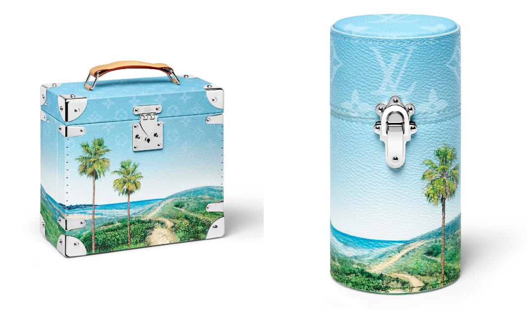 專精於皮革工藝的LV,自然也沒有漏掉對於包裝的講究。這一次,再度找來了洛杉磯當代藝術家Alex Israel攜手合作Cologne Perfume香水系列的視覺,將加州的海景、綠植大地景象,與迷人曙光一一以帆布畫作呈現,烙印上皮革收納罐,以及行李收納箱外頭。Alex Israel更補充:「綠色和藍色的漸變直接來自於加州的地貌海景,我直覺地把它們跟香味連結:它是南加州海岸一早山坡上的綠色,還有海洋及天空的藍色。這是我最愛去走一走的地方。」