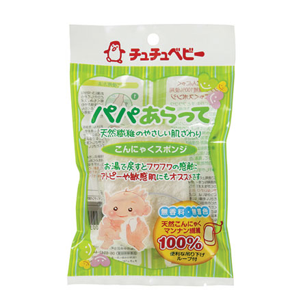 CHU CHU 啾啾 天然蒟蒻嬰兒沐浴海棉是採用天然蒟蒻所含的甘露聚糖纖維而製作而成的自然海綿塊,加上商品特性屬於弱鹼性,不只適合嬰兒使用,也推薦給肌膚敏弱的族群。另外,蒟蒻海綿上附有綁帶,讓你可以使用完輕鬆懸掛固定,保持通風避免黴菌滋生喔!
