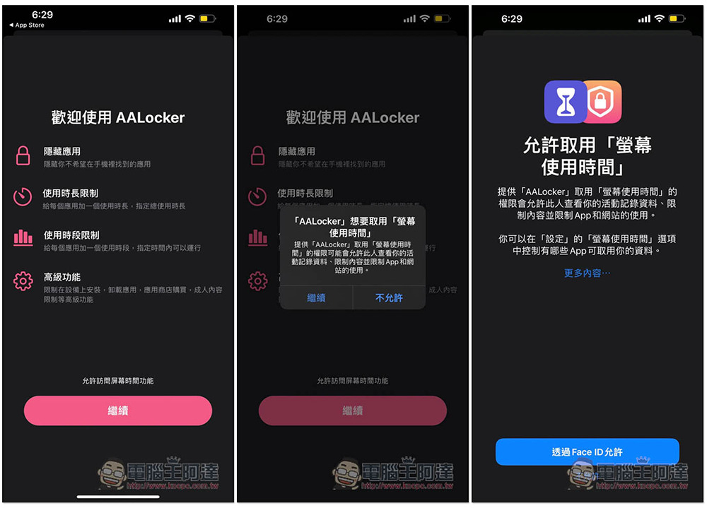 會需要允許取用「螢幕使用時間」,這部分記得按允許,它的功能才能正常運作: