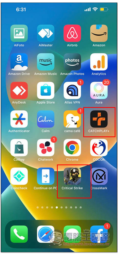 我再次回到剛剛的主畫面頁面,果然 CATCHPLAY+ 和 Critical Strike 兩個 App 都消失了: