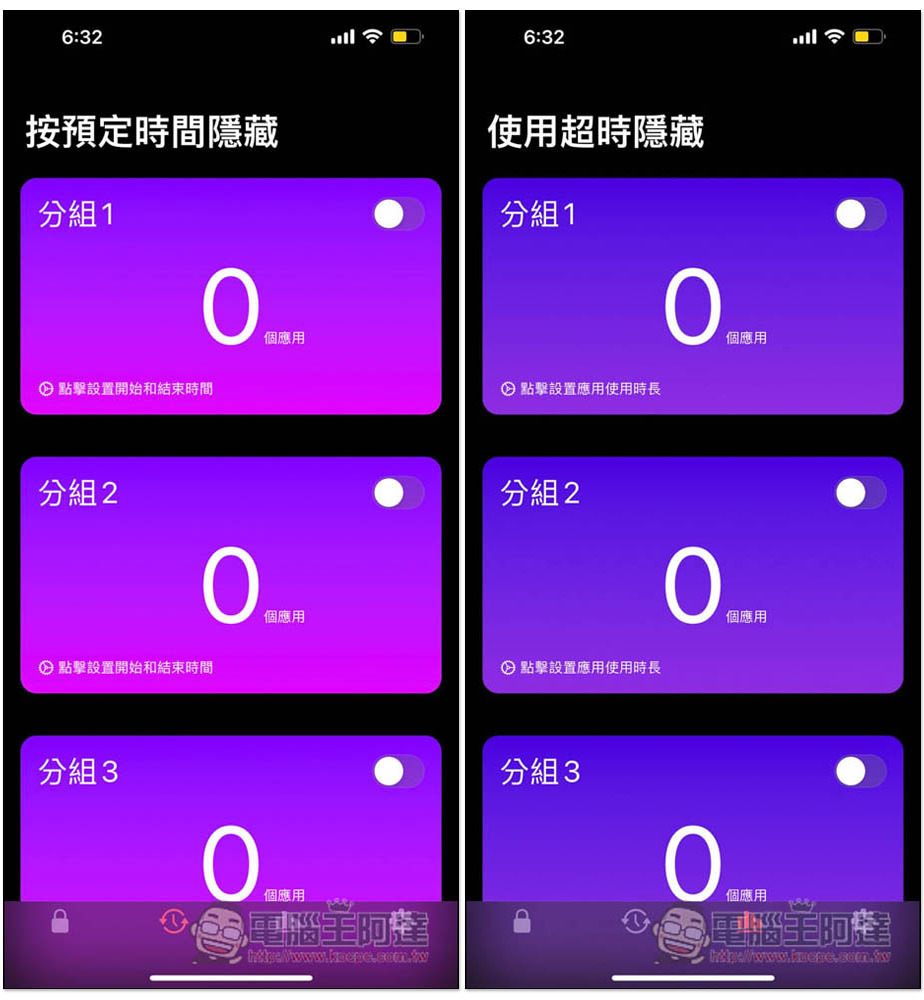 對於經常需要把手機借小孩玩的家長,就可以用「排程需求」或「超時自動隱藏」: