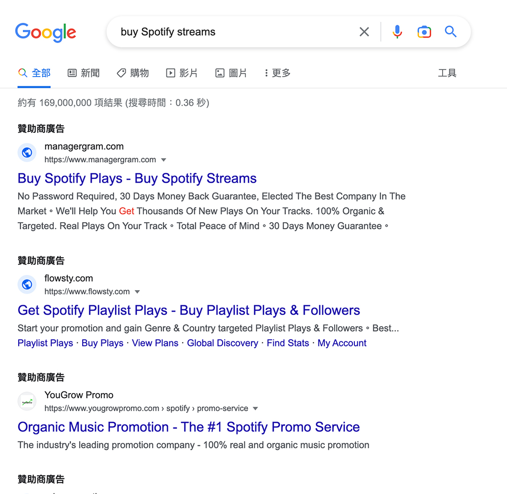 雖然使用 AI 創作歌曲並不新鮮,但在過去的幾個月裡,這個問題已經升級到音樂行業最重視的問題。串流媒體熱潮催生了一系列服務,為音樂家提供了邁向成功之路的機會。Google 搜索購買 Spotify 串流量(buy Spotify streams)會產生數萬個結果,「spotistar.com」等網站不只付費廣告,還以每 1,000 次播放次數 6 美元的價格明碼銷售。