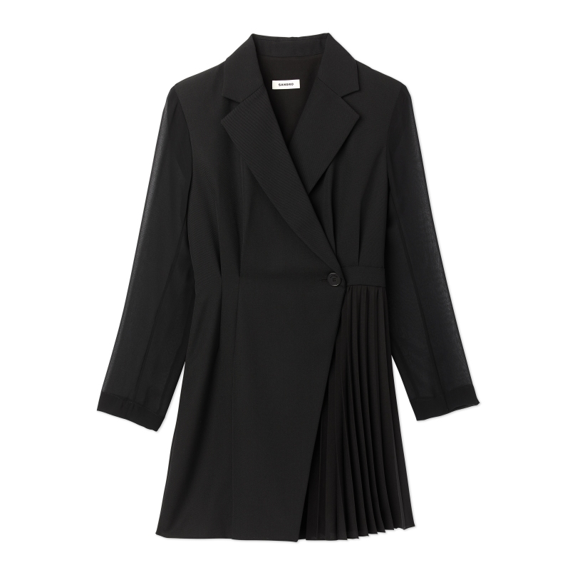 每逢夏天的高溫,明明熱到不行要怎麼追求層次感?Sandro幫你一次搞定,這件黑色的one piece西裝領洋裝,收腰的剪裁搭配上不對稱的設計,讓一件黑色小洋裝也能有層次感,時髦OL必須要擁有!(價格:NT$12,590)