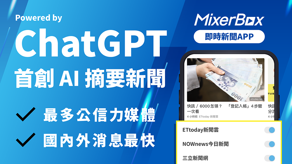 「MixerBox 新聞神器 App」內建 ChatGPT AI 摘要功能,一鍵獲得文章重點,國內外新聞都有