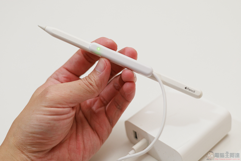 觸控筆尾端還能透過燈號顯示開關機與充電的狀態。這點甚至比起 Apple Pencil 還要更為直覺!真的是最強副廠觸控筆了: