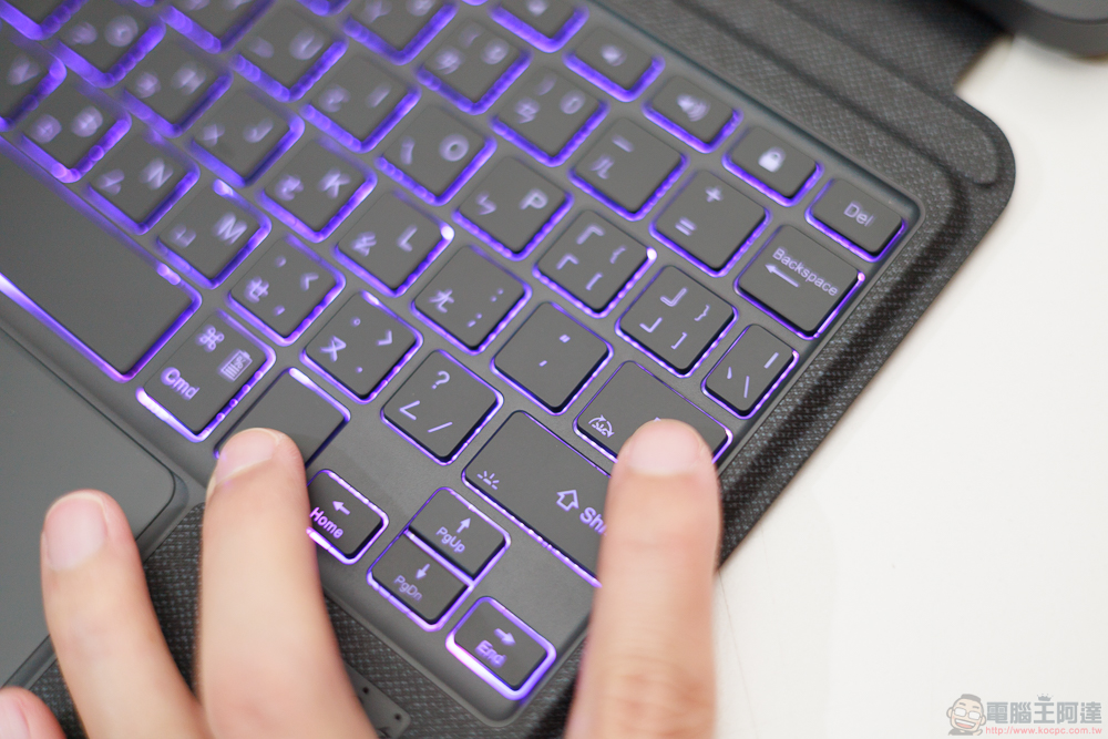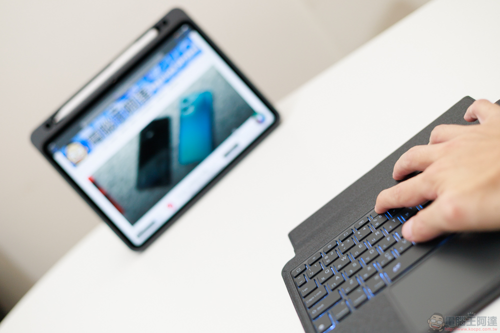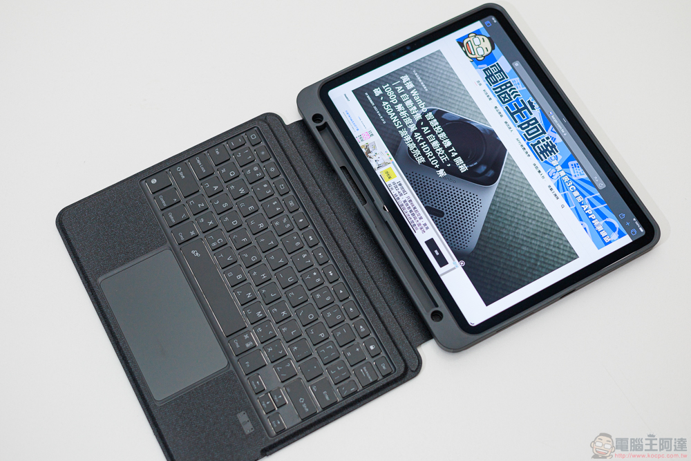 基本上只要是藍牙連線的範圍內,你都可以享有無限制的使用彈性 - 就算把 iPad 拿去連接電視的 HDMI 也可以輕鬆操控(這個原廠巧控鍵盤就真的不行了)。重點是,eiP Magnetix 磁吸可拆式藍牙鍵盤還內建觸控板,基本上所有系統操作都能輕鬆一手掌控,爽度滿滿: