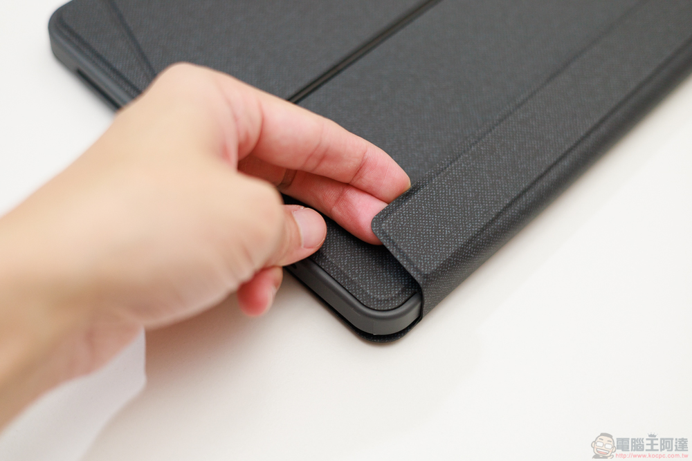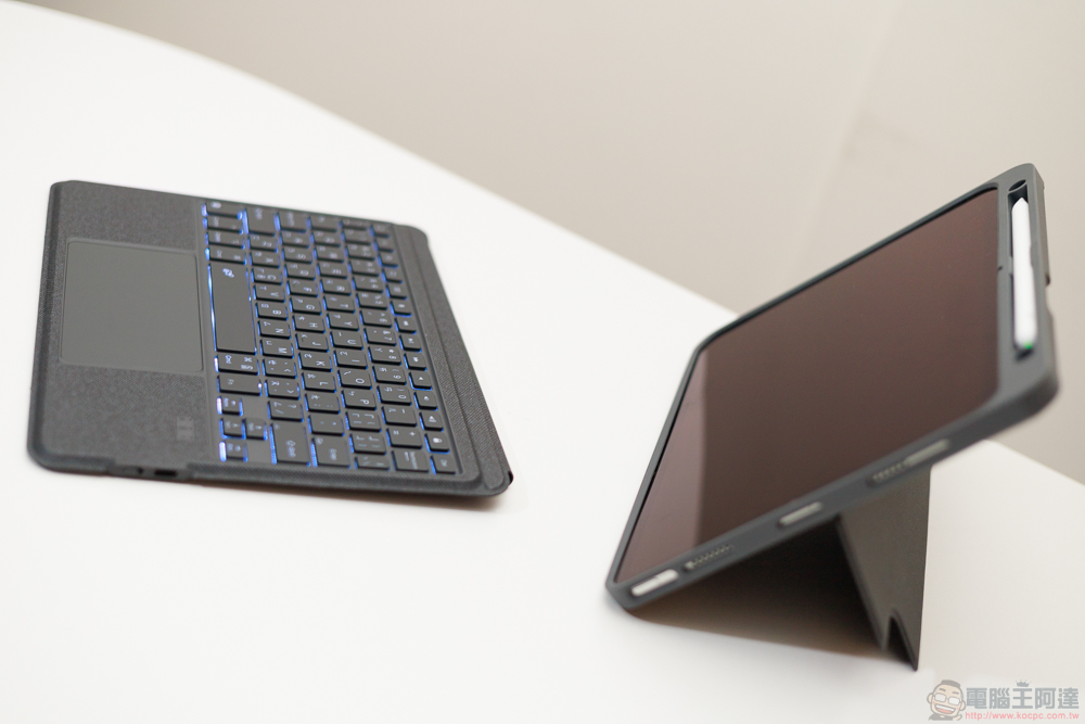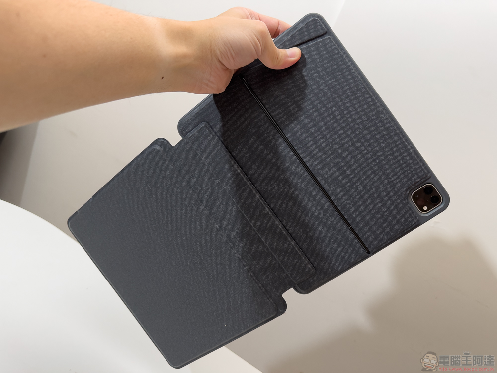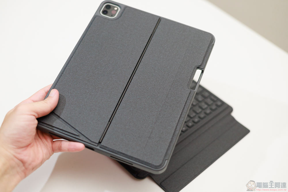 這設計還能讓你輕鬆將保護殼與鍵盤護蓋分離。不僅可以在不需要大量輸入的時候有效減輕重量 - 本身具備保護殼的功能也能兼顧 iPad 使用時的耐摔抗刮: