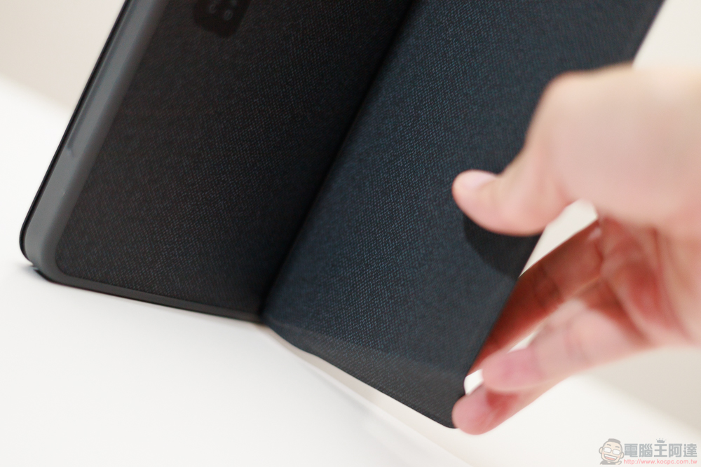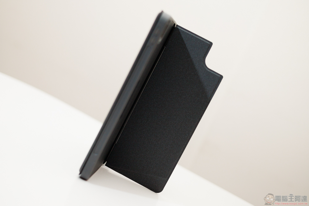 做工紮實且材質感覺也蠻耐髒防刮的,背後的支架也能夠很服貼的貼合保護殼: