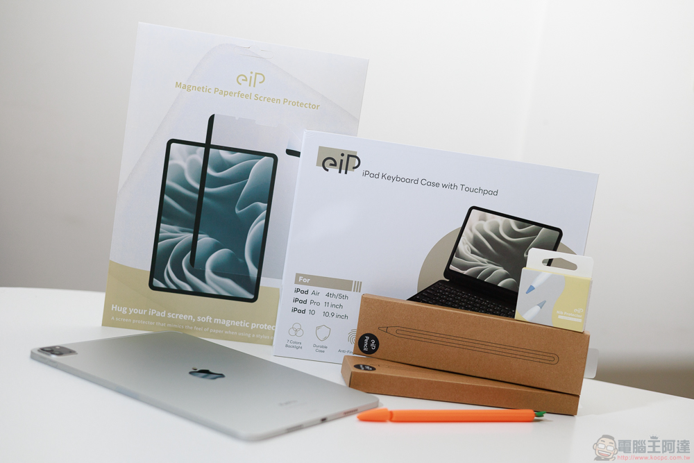 小資族 iPad 體驗全滿足!eiP Magnetix 磁吸可拆式藍牙觸控鍵盤、媲美 Apple Pencil 的磁吸充電觸控筆、專業筆觸磁吸類紙膜 eiP 超大杯全配件開箱