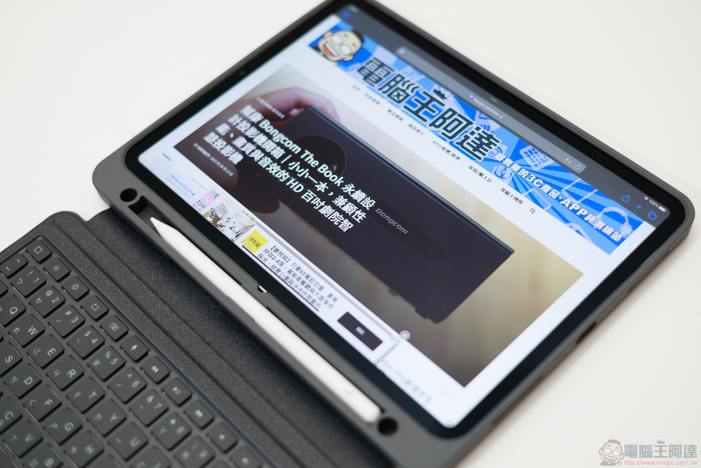 裝上 iPad 之後,說真的沒有想像中那麼沉 - 要知道,它比起原廠的巧控鍵盤還多了可以避免 iPad 直接碰撞的保護殼設計!: