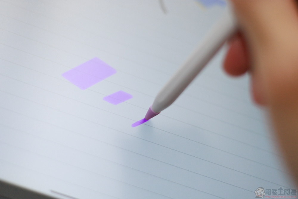 說到配件!eiP 的八色筆尖套當然也要炫耀給大家看一看 - 紫色的跟 eiP Magnetix 的紫色鍵盤背光有夠搭!除了更耐磨,也能提供不同感覺的觸控筆筆觸: