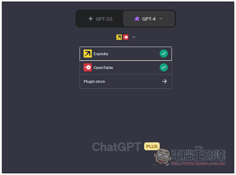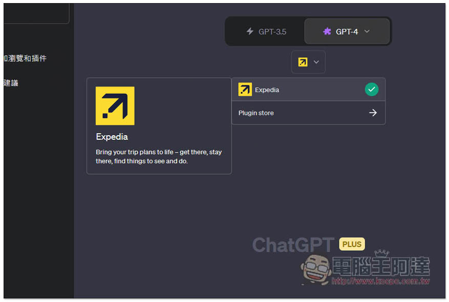 使用方式很簡單,安裝好 Plugins 外掛後,聊天之前把你要啟用的外掛給打勾,我以 Expedia 為例: