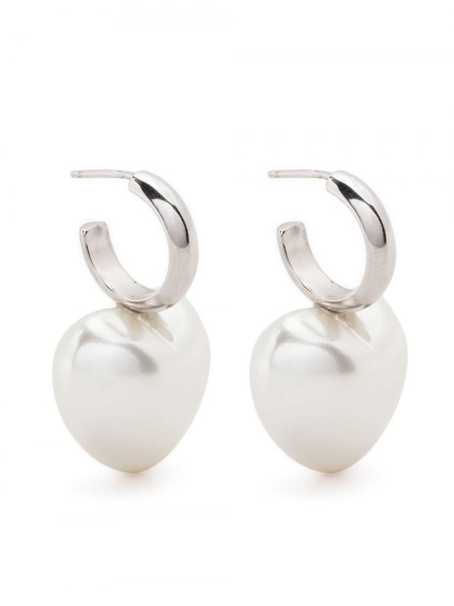 Simone Rocha 剛在台灣開設了全球第四家專賣店,這位來自愛爾蘭的設計師,就是時尚圈珍珠熱潮的幕後推手!這款耳環將珍珠成愛心的形狀,搭配簡約的銀色線條,高級的光澤感令人過目不忘。(價格:約NT$8,618)