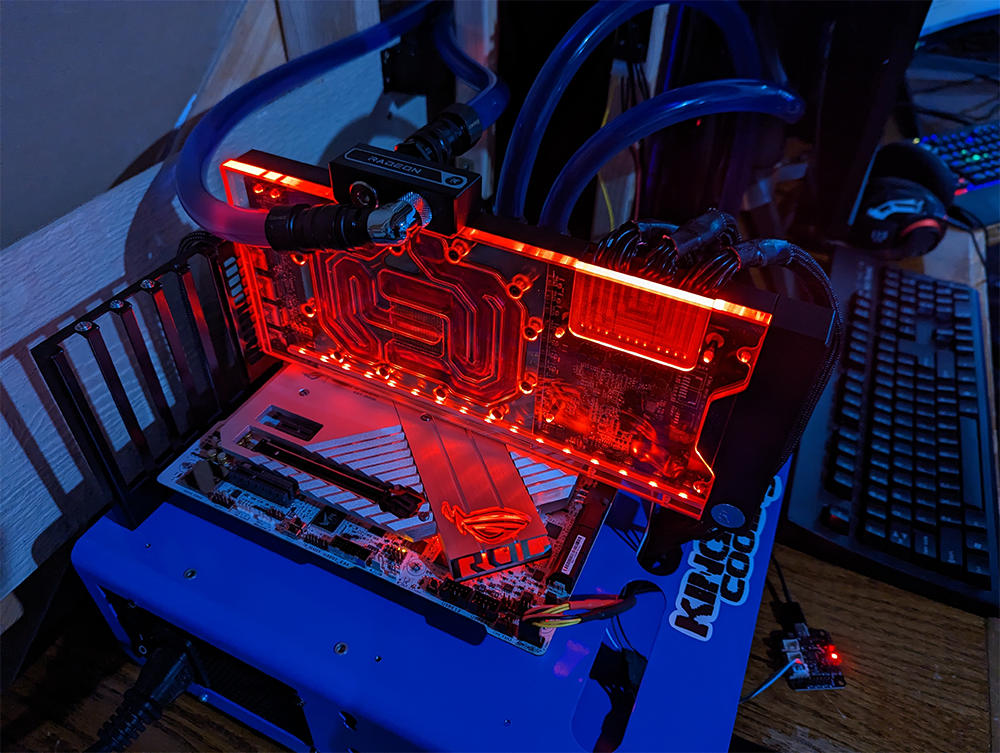 根據說明,他將 AMD Radeon RX 7900 XTX 放在 Elmor Labs EVC2SE 和一些 DIY 模組來解除功率限制,搭配 EK Quantum Vector 水冷客製回圈散熱方案,這方案連接到一個 10 度的水冷器: