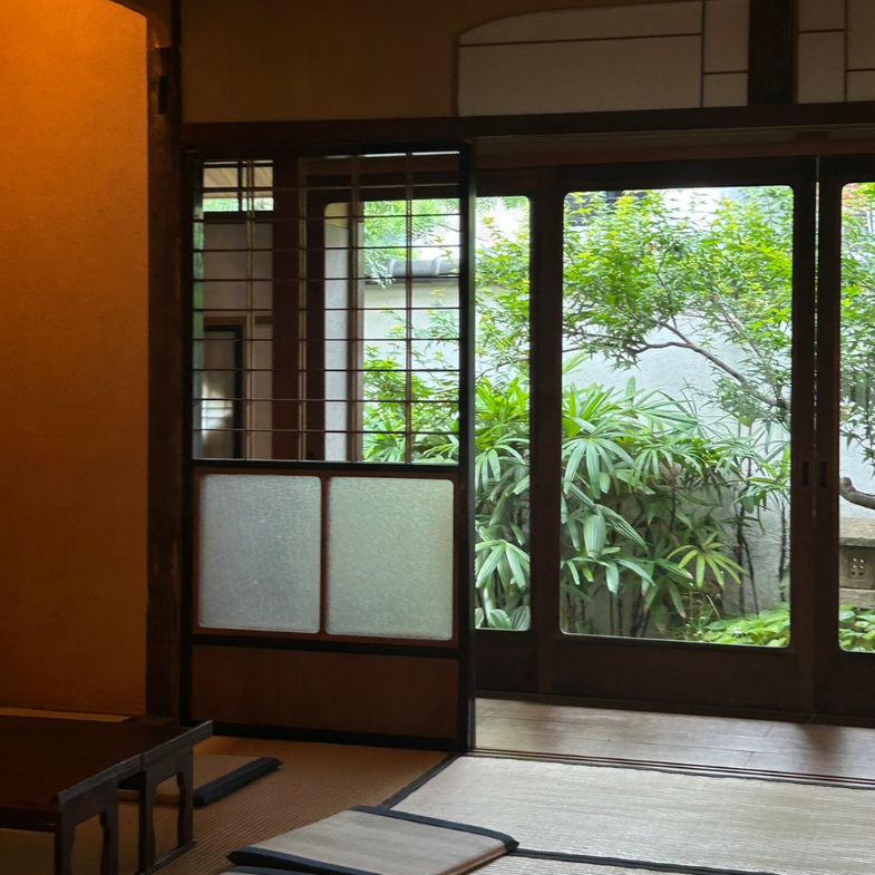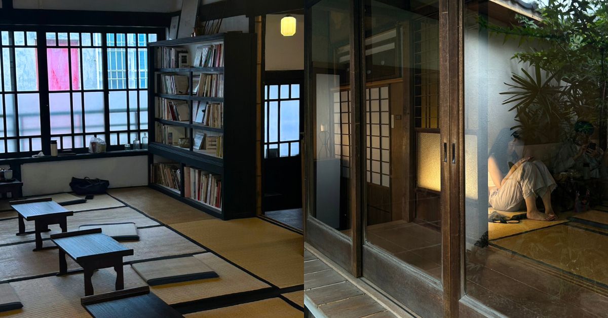入內要先脫鞋,踩上一層木板階梯後是通鋪的榻榻米,屋內空間其實很寬敞,大片的玻璃引進適量的採光,巧妙的不會太多,形成有些幽暗靜謐的迷人氛圍。總共有兩大區塊的榻榻米和室,大約20個席地而坐的座位,穿過走廊還有一個可以容納十多人的實木大桌,要好好坐下用餐也沒問題,或是做為開課或是展演的場所。