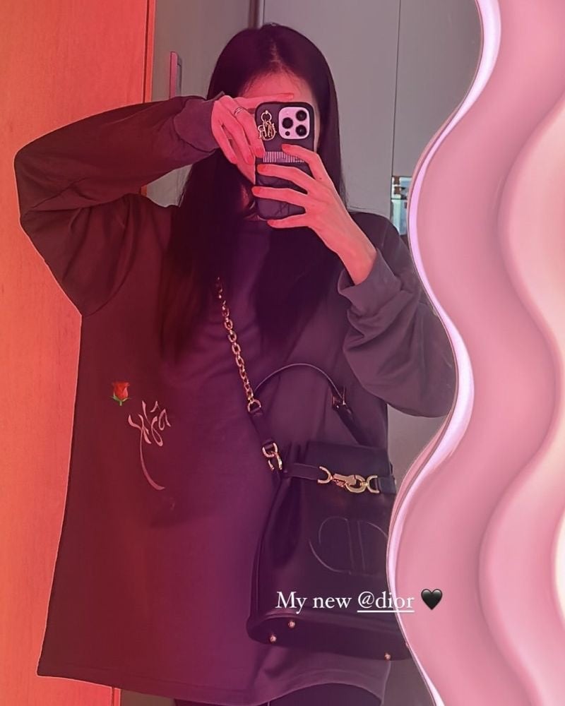 Jisoo之前在IG的限時動態上先是分享了一張對著鏡子的穿搭自拍照,照片中手機擋住了Jisoo的臉,讓背在身上的包包顯得特別搶眼,水桶包的立體感包型,包身上隱約可以看到浮凸的「CD」品牌縮寫Logo標誌,看來DIOR的新包讓親女兒搶先上身了。