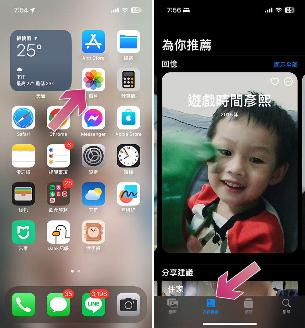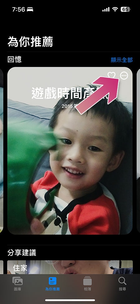 - 打開 iPhone 或 iPad 上的「照片」應用程式,切換到「為你推薦」分頁。