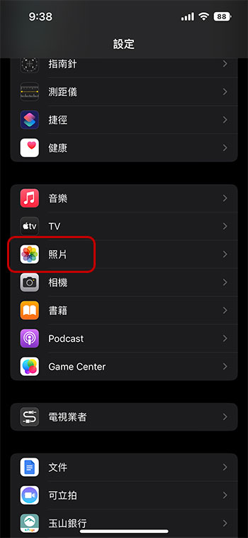- 打開「設定」應用程式,向下捲動找到「照片」。